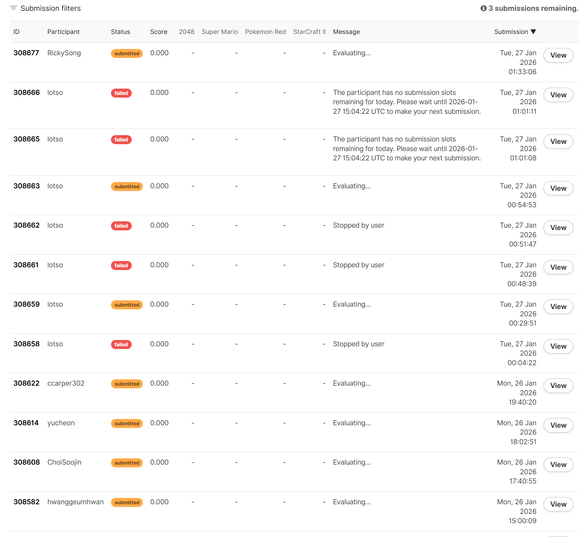 I think something wrong in the recent submission server.